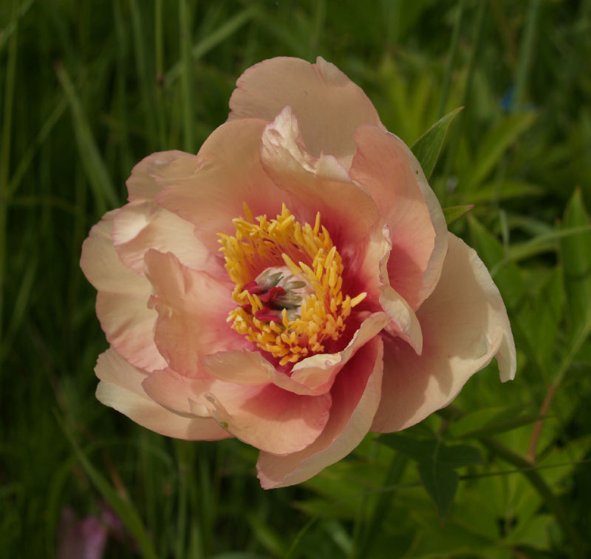 Anderson, 1999, USD. Ито-гибрид. Полумахровый. Цветок диаметром 15 см, изменчивой окраски. Наружные лепестки розовато-лавандовые. Внутренние лепестки при распускании абрикосовые, затем золотистые, жёлтые и, наконец, кремовые. В основании лепестков маленькое тёмно-красное пятнышко. Листва красивая. Куст прекрасной формы, высотой 60-65 см. Срок цветения средний.