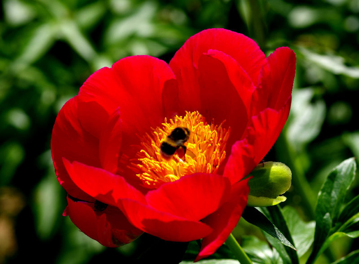 Glasscock, 1980, США. Гибрид пиона лекарственного. Форма махровая бомбовидная, центр плотный, наружные лепестки округлые, ровные. Цветок чисто- тёмно-красный, сверкающий. Диаметр цветка 18 см. Куст нарядный, высотой 80 см. Жизнестойкий. Быстро разрастается. Стебли прочные. Листья не крупные, ярко зелёные. Аромат слабый. Ранний. Фаворит в нашем саду.