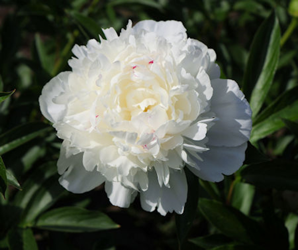 Милле, 1851, Франция. Происходит от пиона молочноцветкового. Диаметр цветка 20 см. Цветок плотный, чисто- белый, в центре и на кончиках лепестков иногда красные метки. Высота куста 95-105 см. Стебли прочные . Листья крупные, тёмно-зелёные. Цветение обильное. Запах нежный. Среднеранний. Быстро разрастается. Часто встречается в садах.